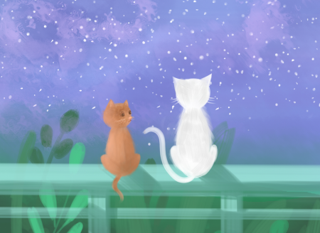 有一天,猫妈妈对俩只小猫说:“孩子们,你们已经长大了,该去外面找工作了。”小雪和小花齐声回答:“妈妈,我们一定会找个好工作的,在过年的时候我们会回来看你的。”