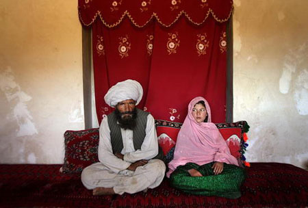一等奖,儿童新娘 40岁的阿富汗男子穆罕默德与只有11岁的古拉姆结婚。(摄影师:斯蒂芬妮-辛克莱)