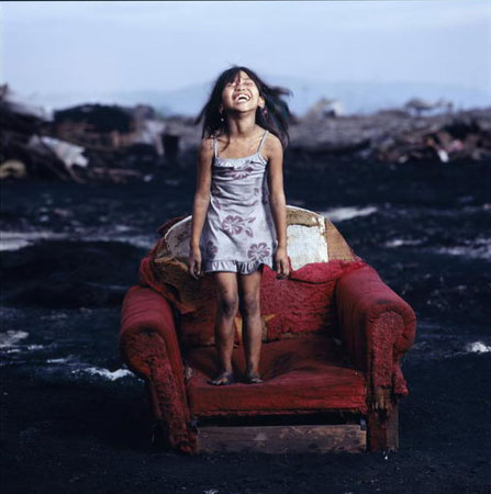 三等奖 居住在马尼拉垃圾堆的9岁女孩在破沙发上庆祝9岁生日。(摄影师:施瓦兹巴赫)