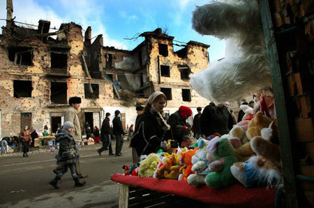 战后车臣街头的儿童。