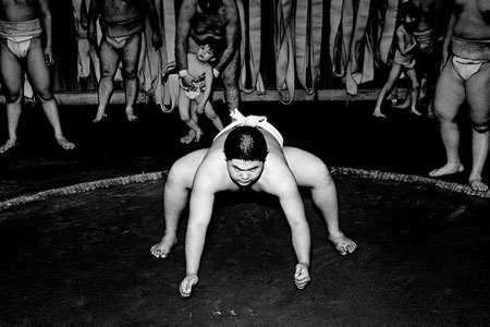 练习相扑的儿童。