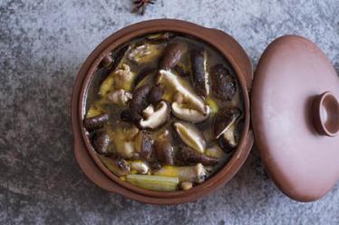 2、将大米中放些色拉油,同时放入香菇粒,然后开始煮。