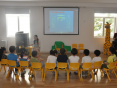 现在老师给小朋友讲一“大西瓜和小老鼠”;的故事。(出图片,讲故事)