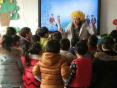 小朋友,今天老师给小朋友带来了一个神奇的大口袋,里面藏着一个小朋友的好朋友,你们知道它是谁吗?现在老师就让小朋友上来摸一摸,猜猜它是谁。(让幼儿摸一摸,说说摸上去的感觉,猜猜里面是什么)