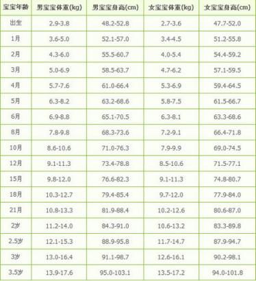 宝宝身高体重增长标准