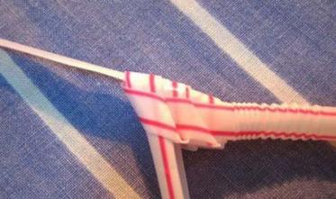 6、把两次折起的那一条,按第二步的方法,从中间的一条穿过。