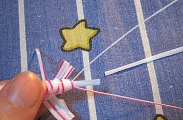 10、每一边的宽条再剪开成四个窄条,当作虾腿。