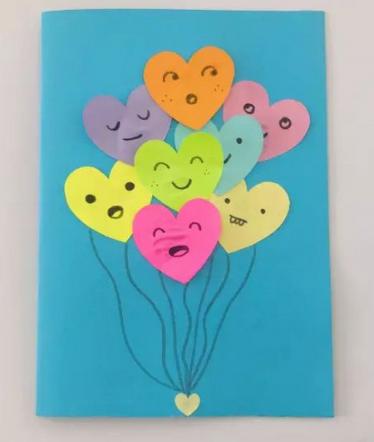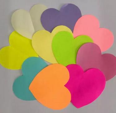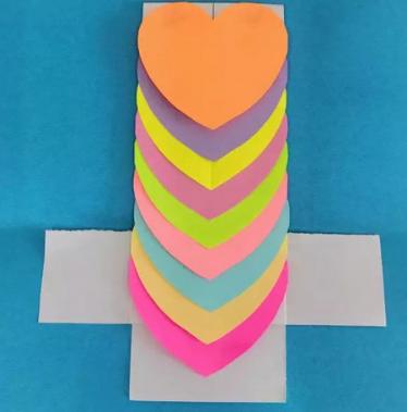 制作步骤:剪若干个不同颜色的心形