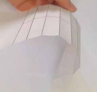 贴好后长纸条多余的部分向后折