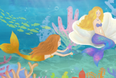在很深、很深的海底,有一座雄伟的城堡,里面住着六位人鱼公主,她们都十分美丽, 尤其是最小的公主,她留着金色的长头发,比姐姐们都漂亮,她最喜欢听姐姐们说许多海面上的新鲜事,因此,小公主常想着,有一天能自己到海面上看看。