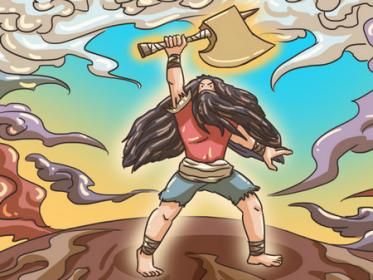 传说太古时候,天地不分,整个宇宙像个大鸡蛋,里面混沌一团,漆黑一片,分不清上下左右,东南西北。但鸡蛋中孕育着一个伟大的英雄,这就是开天辟地的盘古。盘古在鸡蛋中足足孕育了一万八千年,终于从沉睡中醒来了。他睁开眼睛,只觉得黑糊糊的一片,浑身酷热难当,简直透不过气来。他想站起来,但鸡蛋壳紧紧地包着他的身体,连舒展一下手脚也办不到。盘古发起怒来,抓起一把与生俱来的大斧,用力一挥,只听得一声巨响,震耳欲聋,大鸡蛋骤然破裂,其中轻而清的东西向上不断飘升,变成了天,另一些重而浊的东西,渐渐下沉,变成了大地。
