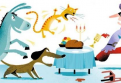 从前,有一头驴子,它辛辛苦苦的为主人干了一辈子活,有一天它无意中听见主人说,这头驴太老了,已经干不动活了,不如把它卖给屠夫吧,驴子听了很害怕,不,我还不想死,我那么喜欢音乐,我要去不莱梅学长笛,于是它偷偷地逃走了,路上他看到一只猎狗趴在路边不停地叹气,“朋友,你生病了吗?”“哦,不,我就是太老了,主人嫌弃我,不要我了,”“哦,我们的遭遇都一样,我正要去不莱梅学音乐,你跟我一起去吧,”猎狗同意了,猎狗和驴子走啊走,遇到一只伤心的猫,驴子问,“你怎么啦?”猫回答说,“我老了,抓不到老鼠了,主人嫌我没用,总是打我,我只好离家出走了”,驴子说,“我们正打算去不莱梅学音乐,你愿意和我们一起去吗,”猫高兴的答应了,三个小伙伴继续向前走,路过农场时,它们听见一只公鸡正在绝望的啼叫,驴子大声问,“喂,朋友,你怎么啦?”公鸡回答说,“我太老了,早晨总是睡过头,主人觉得我再也不能准时叫大家起床了,他想把我炖了做今天的晚餐”,驴子说,“那太可惜了,你的嗓音多好啊,不如跟我们一起去不莱梅学音乐吧,”公鸡同意了,天黑时,四个小伙伴打算到前面的一栋房子里借宿一晚,他们来到了房子跟前,驴子趴在窗户上偷偷向里面张望,公鸡小声的问,“屋子里有什么?”驴子说,“有一张桌子,桌子上有很多好吃的。一群强盗正在聚餐呢,”公鸡说,“咱们把强盗吓跑吧,这样就能进去吃东西了”,四个小伙伴商量了一会儿,想出一个办法,公鸡站在猫头上,猫站在猎狗背上,猎狗站在驴背上,驴子一发信号,四个小伙伴齐声大叫,驴叫声、狗叫声、猫叫声、鸡叫声混在一起,别提多吓人了,屋子里的强盗以为是妖怪来了,吓得全都跑出来躲进了树林,四个小伙伴高兴的进了屋,毫不客气地享用着桌子上的美味,吃饱喝足后,他们觉得又累又困,就吹灭蜡烛,呼呼大睡起来,这时一个强盗溜了回来。他摸索着走向壁炉,想去点亮蜡烛,却撞到了正睡在壁炉边的猫,猫睁开眼睛,伸出爪子就挠,强盗被挠疼了,他看到黑暗中有两只发光的眼睛,吓得转身就跑,他刚跑到门口,他刚跑到门口,就被睡在门后的猎狗咬了一口,他尖叫着逃到院子里,又被躺在地上的驴子绊倒了,驴子狠狠的踢了他一脚,这时公鸡惊醒了,扯着脖子大叫起来,倒霉的强盗连滚带爬跑回森林,对同伙说,太可怕了,屋子里有个巫婆想挠我,门口有个猪咬我,院子里有个怪兽用棍子打我,还有一个魔鬼在不停的大叫,强盗们吓得再也不敢回去了,四个小伙伴去不莱梅学完音乐就回到那栋房子里,组建起一支非常受欢迎的乐队,哦,对了,驴子没有学长笛,因为它爱上了敲鼓。