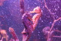 海马爸爸的腹部有一个育儿袋,每到生产季节,海马妈妈就会将成熟的卵产在海马爸爸的育儿袋里。与此同时,海马爸爸也排出精子,让卵在育儿袋里受精,从此,孕育小海马的光荣使命就交给海马爸爸了,海马爸爸的育儿袋里有大量血管,可以为小海马提供足够的养分,到了分娩的时候,海马爸爸就将它那长长的尾巴卷在海藻上,靠腹部肌肉的收缩将小海马从育儿袋中生出来。