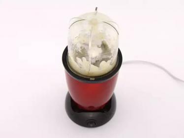 步骤3:将茄子肉放入搅拌机中,倒入少量温开水,搅打成茄子泥。