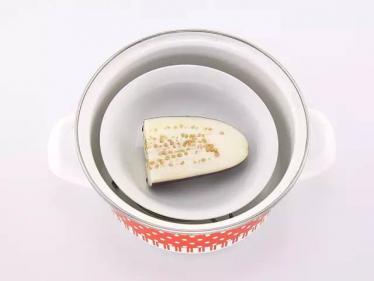 步骤2:将蒸熟的茄子取出,刮出茄子肉。