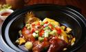 7、大蛤、猪肉、葱姜一起放入盆里。
